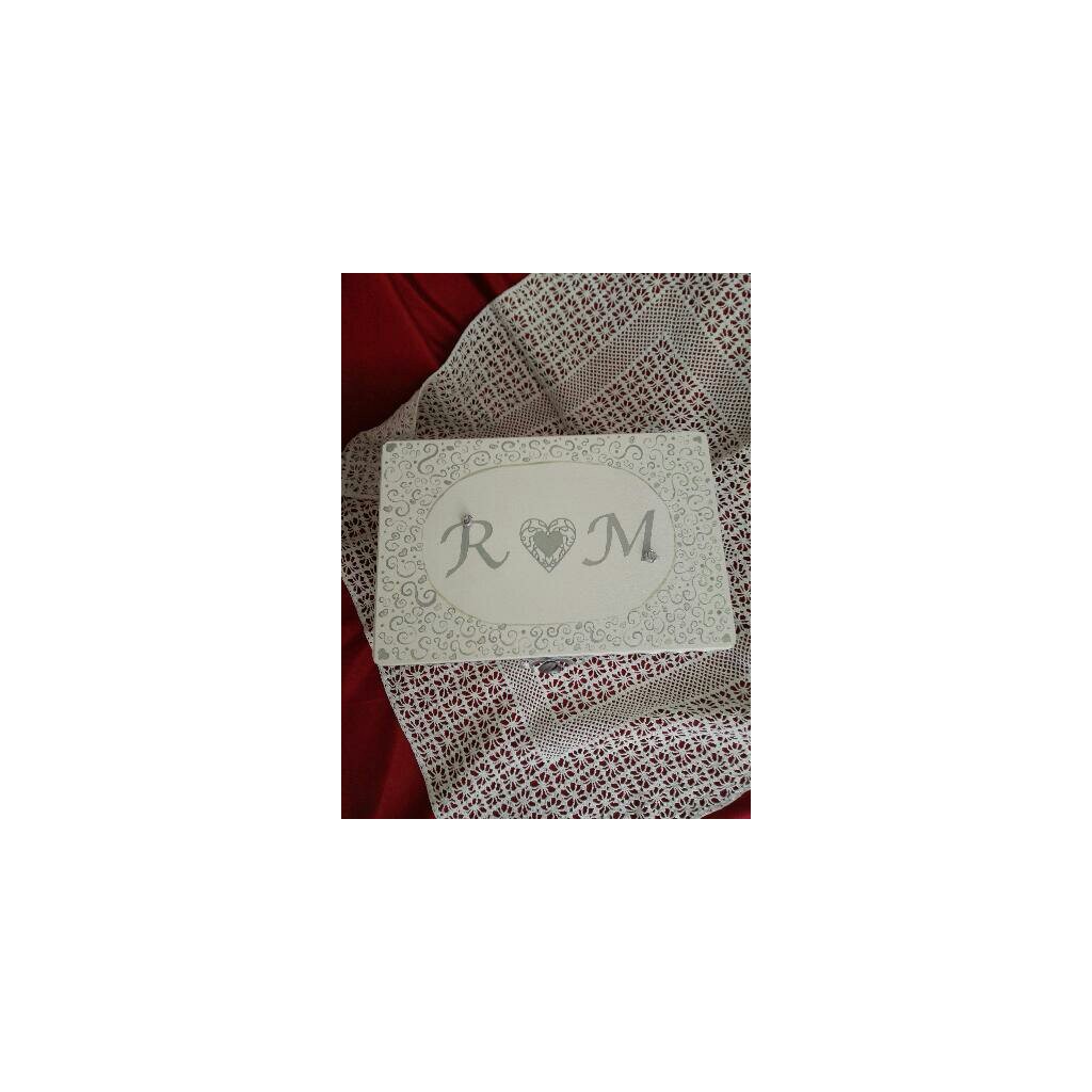 Svatební truhla, se saténovou mašlí, látkovou růží uvnitř, ruční malbou na víku